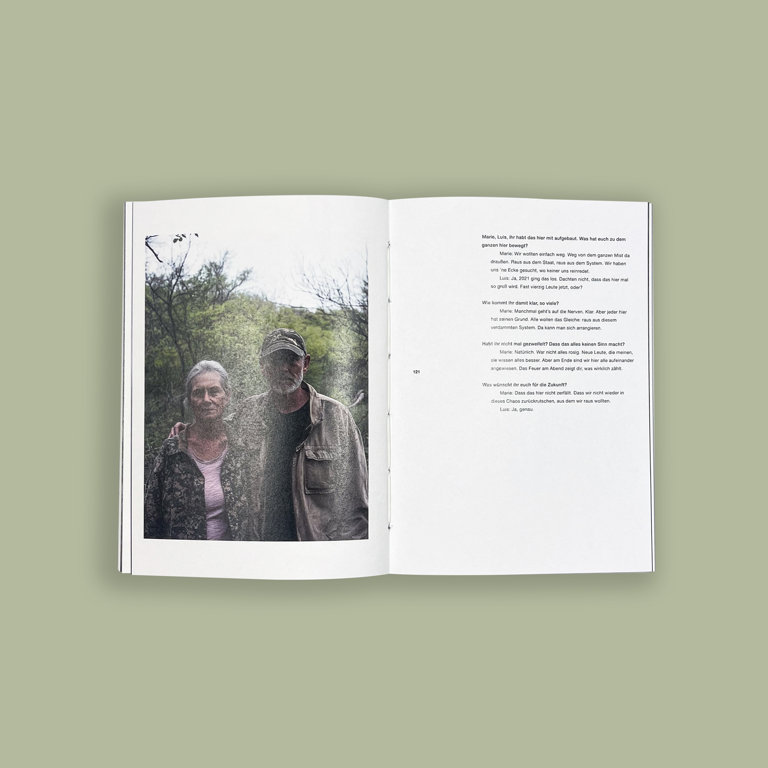 Im abgelegenen Süden Frankreichs, in einem schwer zugänglichen Teil der Cevennen, hat sich seit 2021 eine autonome Gemeinschaft etabliert. Die Gruppe setzt sich aus Menschen unterschiedlicher Herkunft zusammen – darunter Umweltaktivisten, ehemalige Militärangehörige, Hacker und Aussteiger. Ihr gemeinsames Ziel: ein Leben außerhalb staatlicher Ordnung und ökonomischer Abhängigkeiten.Die Arbeit soll dazu anregen, unsere Wahrnehmung zu hinterfragen. Es will nicht täuschen, sondern sensibilisieren: Wie leicht glauben wir einer Geschichte, wenn sie überzeugend erzählt wird? Wenn Bilder und Worte ein geschlossenes Weltbild erzeugen? Wie leicht lässt sich Wirklichkeit heutzutage digital konstruieren? Wie oft hinterfragen wir noch – und worauf bauen wir unser Vertrauen?